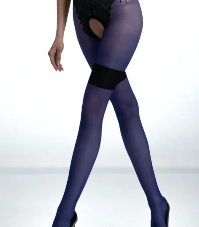 Diva Very Peri/Black Crotchless Tights 30 Denier