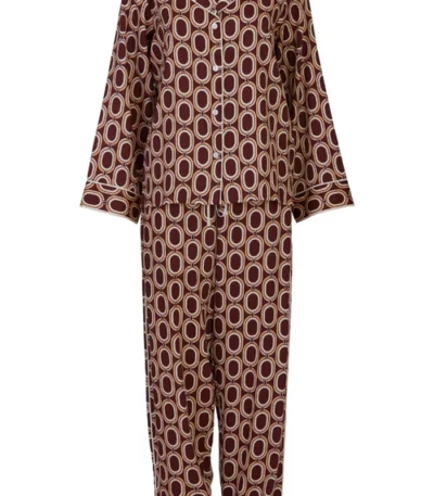 Product description Unwind in luxury with the Fitzrovia Chain Print Pyjama Set from Fable & Eve, the ultimate in high-end nightwear. This luxurious pyjama