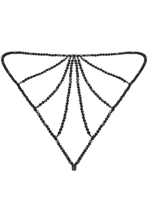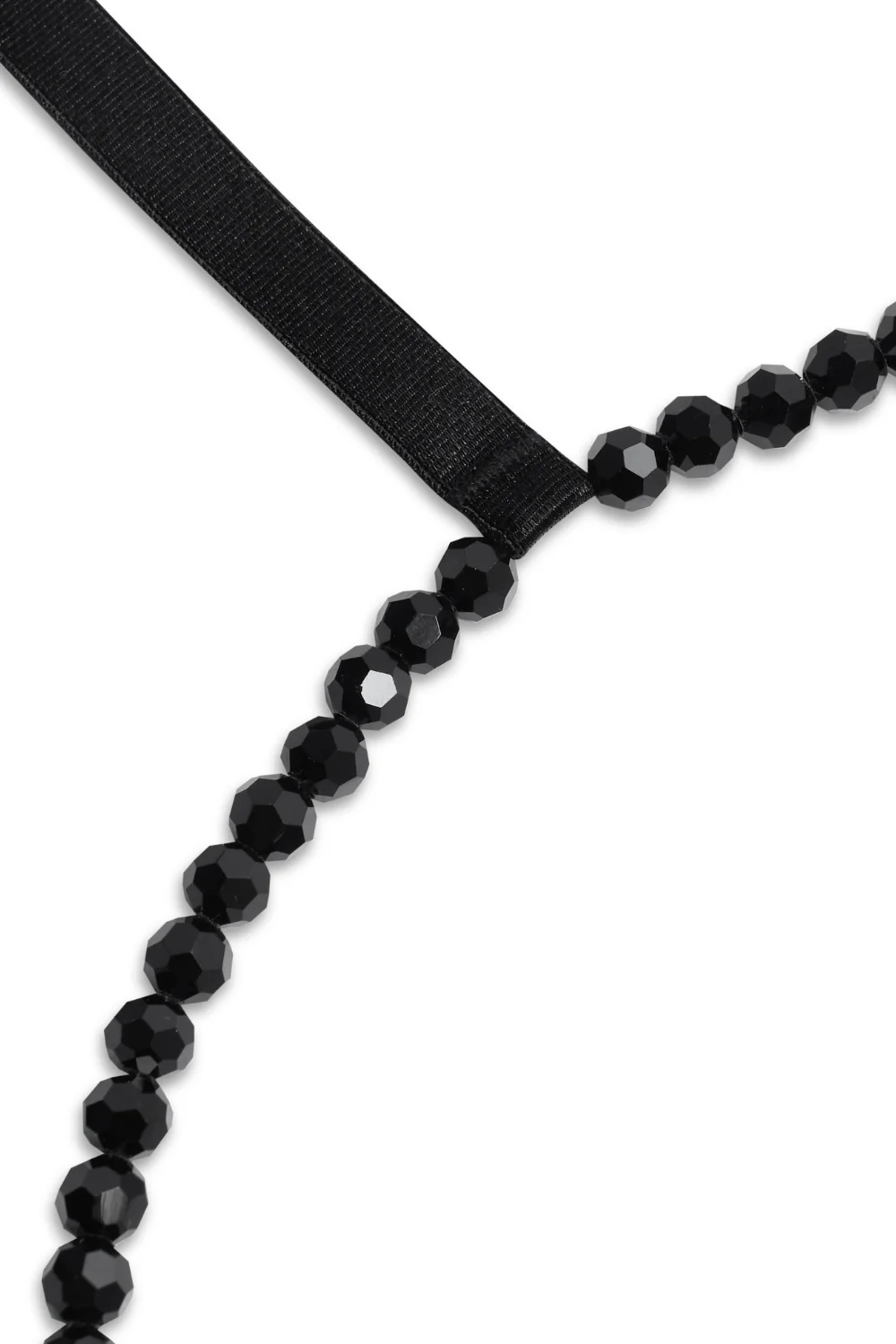 The Maison Close À Ton Cou Harness is a luxurious black body harness that instantly sophistic any outfit. Crafted from lustrous glass pearls, this versatile piece can be worn as a harness, choker, or waist chain, making it a unique addition to your wardrobe. Adjustable neck and back closures ensure a comfortable and secure fit. Whether layered over sexy lingerie or styled with evening wear, this harness is a show-stopping accessory for any occasion.
