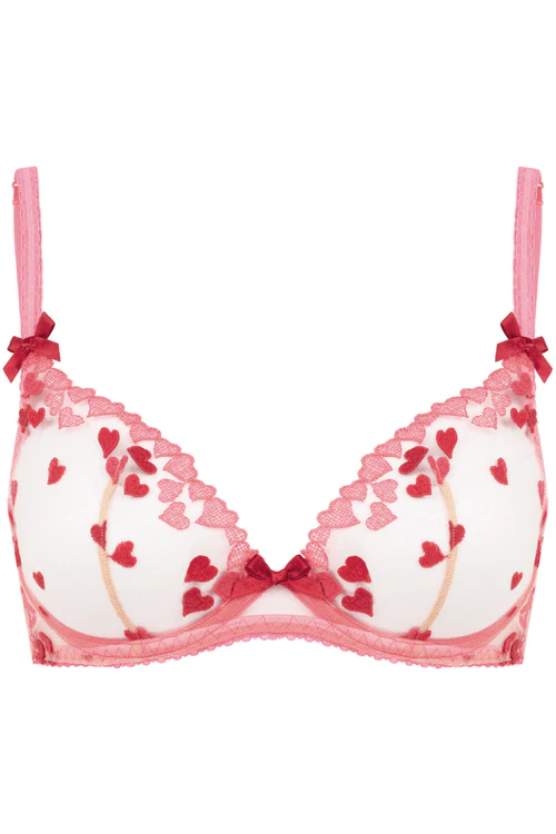 Cupid is back to spread some romance. Seductively sheer tulle has been scattered with vibrant embroidered love hearts, making this an irresistible Valentine’s treat.