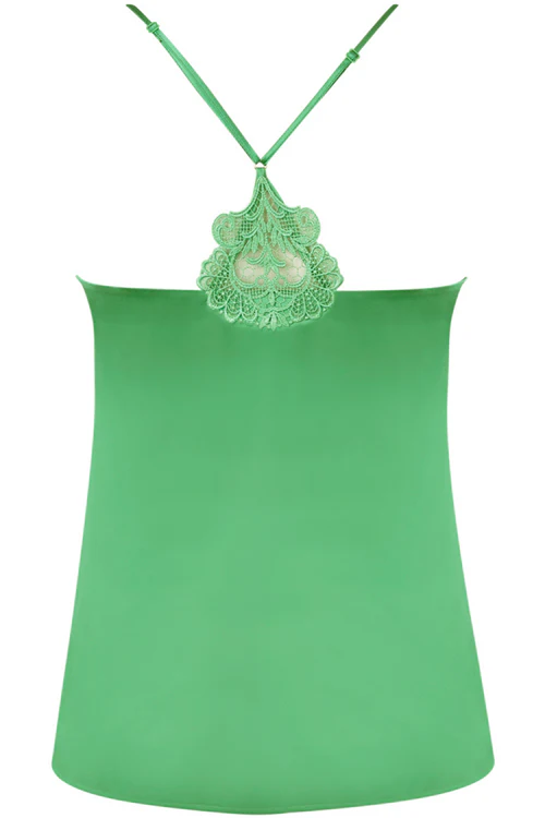 • Silk satin camisole in green.