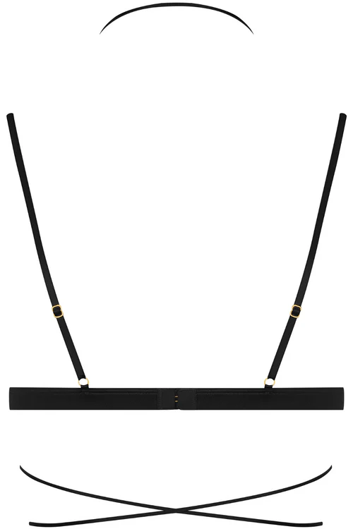 The French Kiss Triangle Bra in black by Maison Close is a sensual yet comfortable wireless bralette, perfect for everyday luxury. Crafted from soft satin microfibre, it features moulded cups for a flattering fit that enhances your silhouette. The adjustable and removable lacing adds a bondage touch, while branded lipstick tips and golden jewel adjusters offer signature Maison Close charm. Complete with adjustable shoulder straps and a secure back hook-and-eye closure, this bralette is designed for both comfort and seductive French style.
