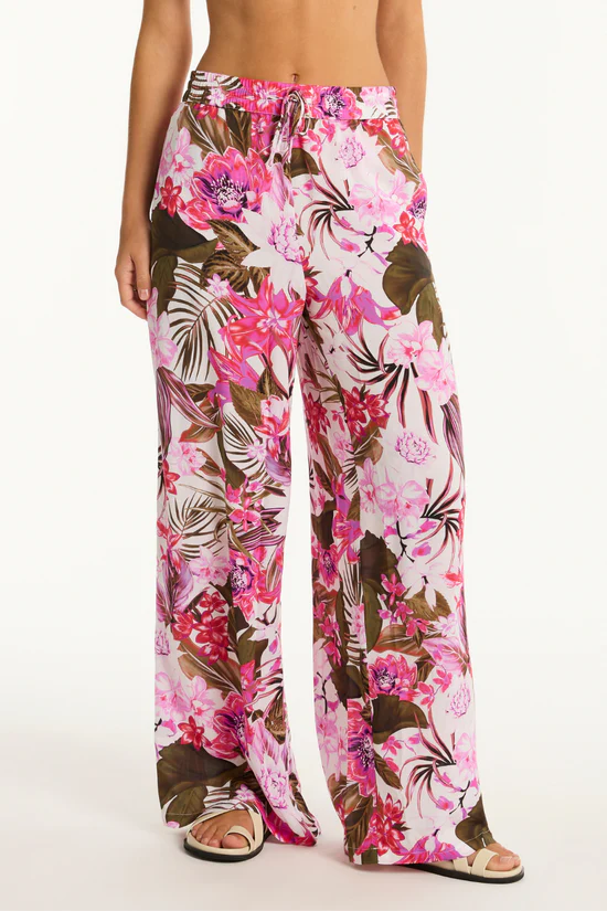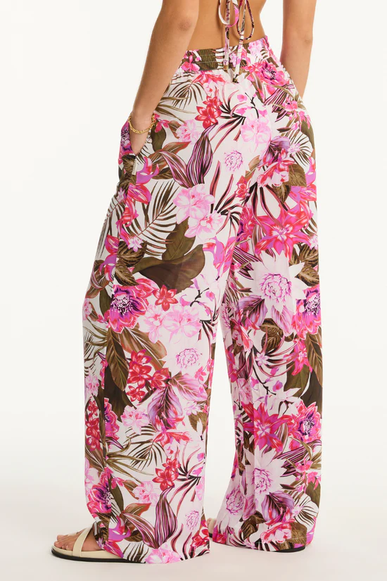Elevate your beachwear collection with the Isla Palazzo Pants from Sea Level, Australia’s renowned swimwear and beachwear brand. These luxury palazzo pants are crafted from soft viscose and feature exquisite botanical motifs in a rich fuchsia pink, khaki, and white palette, making them a stylish choice for any beachside outing.