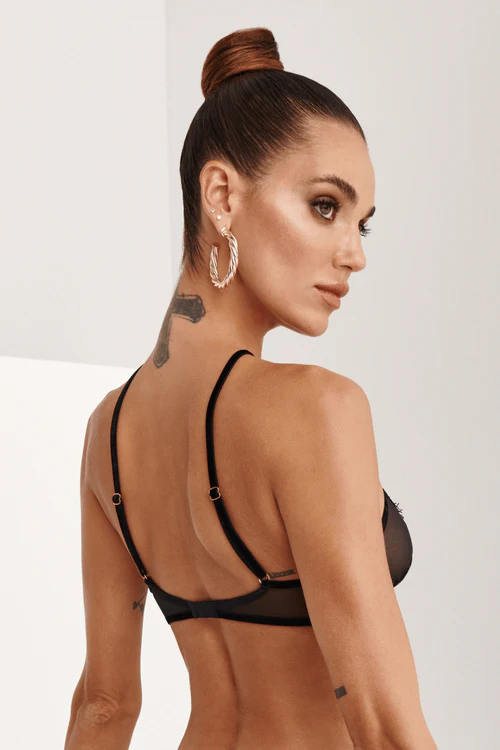 A stunner of a triangle bra that will leave you in awe. The Bracli Kyoto Bra is a gorgeous design of sheer mesh enriched with velvet straps and delicate Leavers lace. Quite the impressive showstopper for everyday wear or for a hot and steamy night in.