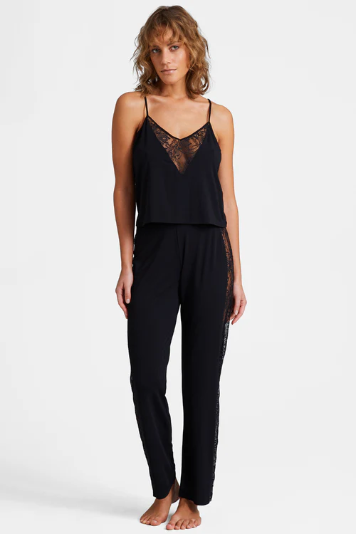 The Lazy Days set combines the softness of a silk and modal knitted fabric with the transparency of intricate lace for lounging in style. The perfect balance of comfort and sexiness!