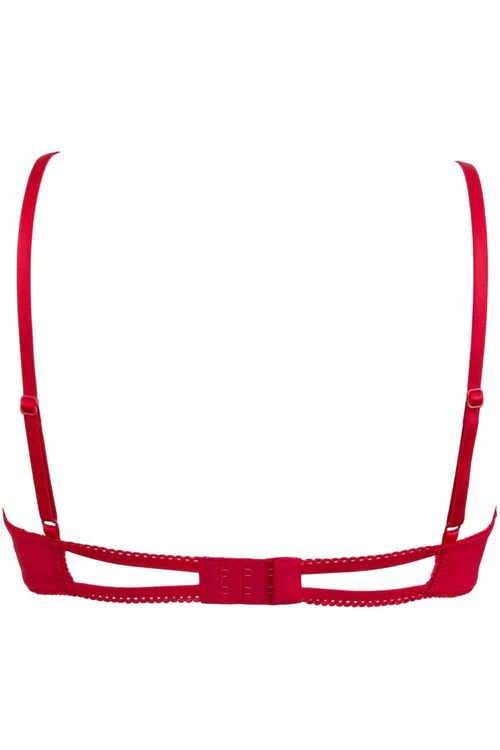 Switch between playful seduction and sensational minimalism with this open-cup bra by Maison Close, which features a detachable satin bow between the breasts. Taking its cue from bondage fashion, the underwires and elastic strapping have a framing effect – it’s not the bra that’s the main attraction here, it’s you.