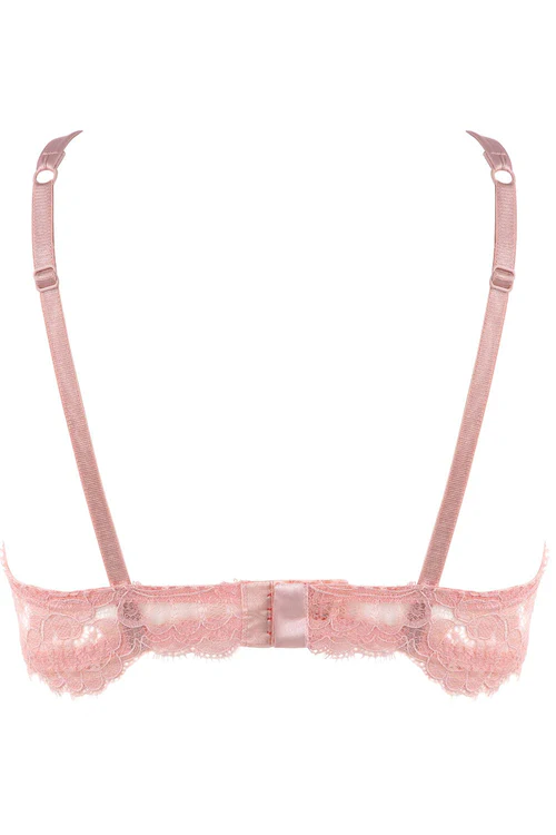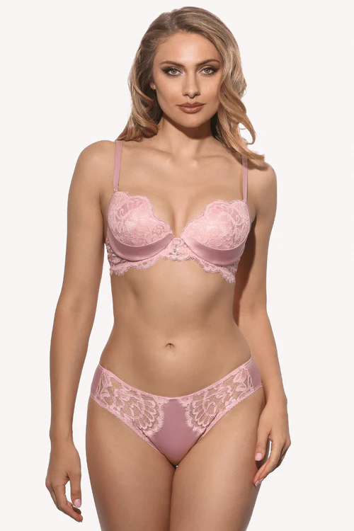 Crafted from pink satin and floral lace Marlene push up bra features padding ups with underwires to create a rounded bust for a stunning effect. The removing padding and adjustable shoulder straps let you customise your perfect look and fit.