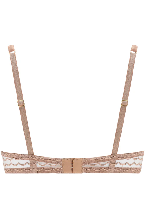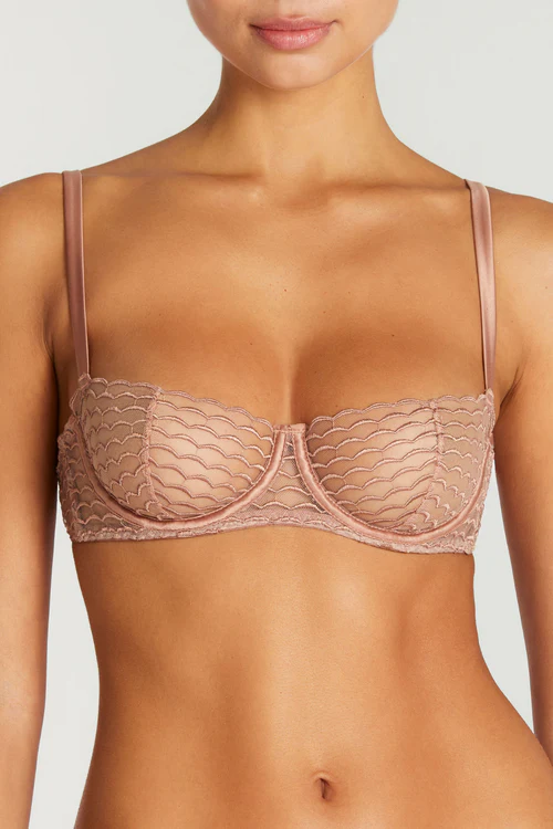 Adorn your bust with the finest embroidery in the Talia bra by Coco de Mer. This underwired balconette bra features supportive vertical seaming. The cups and band are made from waved embroidery. Pair it with the Talia brief or thong for elegance in and out of the boudoir.