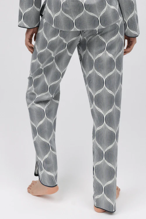 The Nicole pyjama bottoms are made from cotton and modal. They feature a charcoal and white geometric pattern. The trousers have two side pockets, elasticated at the back waist, with an adjustable front drawstring. Wear them with the matching pyjama top or slouch jersey top for a sophisticated look to relax or sleep in.