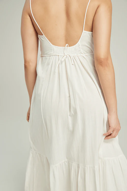 Upgrade your loungewear collection with the Organic Cotton Maxi Trapeze Dress! Crafted from 100% organic cotton, this lightweight and breathable dress features a maxi length, thin shoulder straps with a self-tie back. The loose fit and white sand hue provides a timeless style to transition from day to night.
