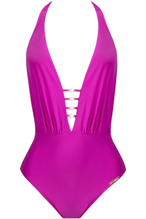 Perles Nacrées Halter Swimsuit Fuchsia