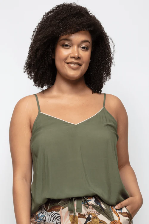 Made from a beautifully soft 100% woven modal, the Savannah top is trimmed with modal. With a deep v-neckline and adjustable straps, the top has a flattering, comfortable fit.