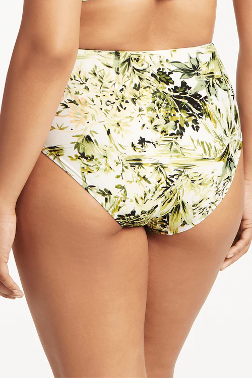 The Tropica high waist bikini bottom is printed on Sea Level’s Eco recycled base with a sleek and soft hand feel and is designed for the ultimate comfort and support. It features a high-waisted fit with gathered sides and moderate/full coverage.